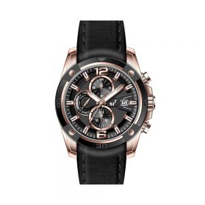 Stainless steel case, rose gold colored and black coating, polished / mat